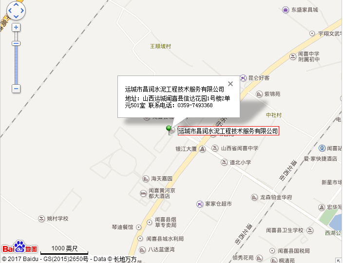 運(yùn)城市昌潤(rùn)水泥工程技術(shù)服務(wù)有限公司聯(lián)系人:李經(jīng)理聯(lián)系電話:0359-7493368手機(jī)號(hào)碼:13934096875 13503596716微信號(hào):13934096875網(wǎng)址:m.dghuayi.com公司地址:山西運(yùn)城聞喜縣信達(dá)花園1號(hào)樓2單元501室
