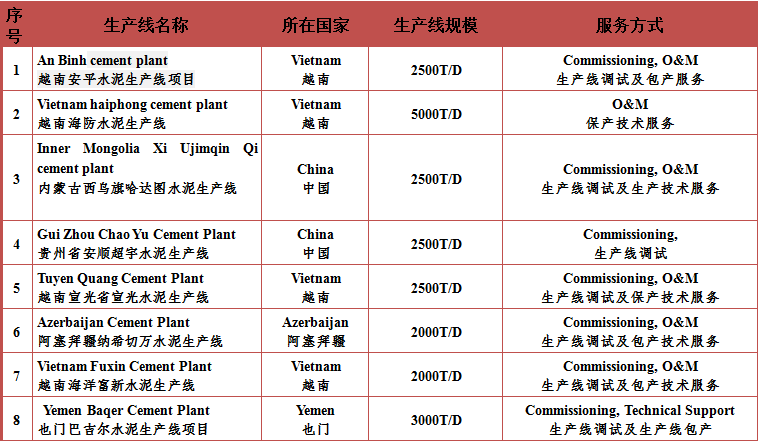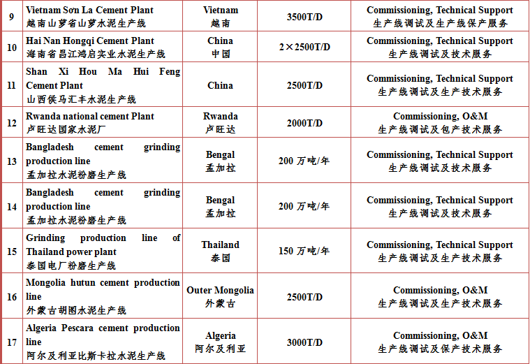 運(yùn)城市昌潤(rùn)水泥工程技術(shù)有限公司主要業(yè)績(jī)表